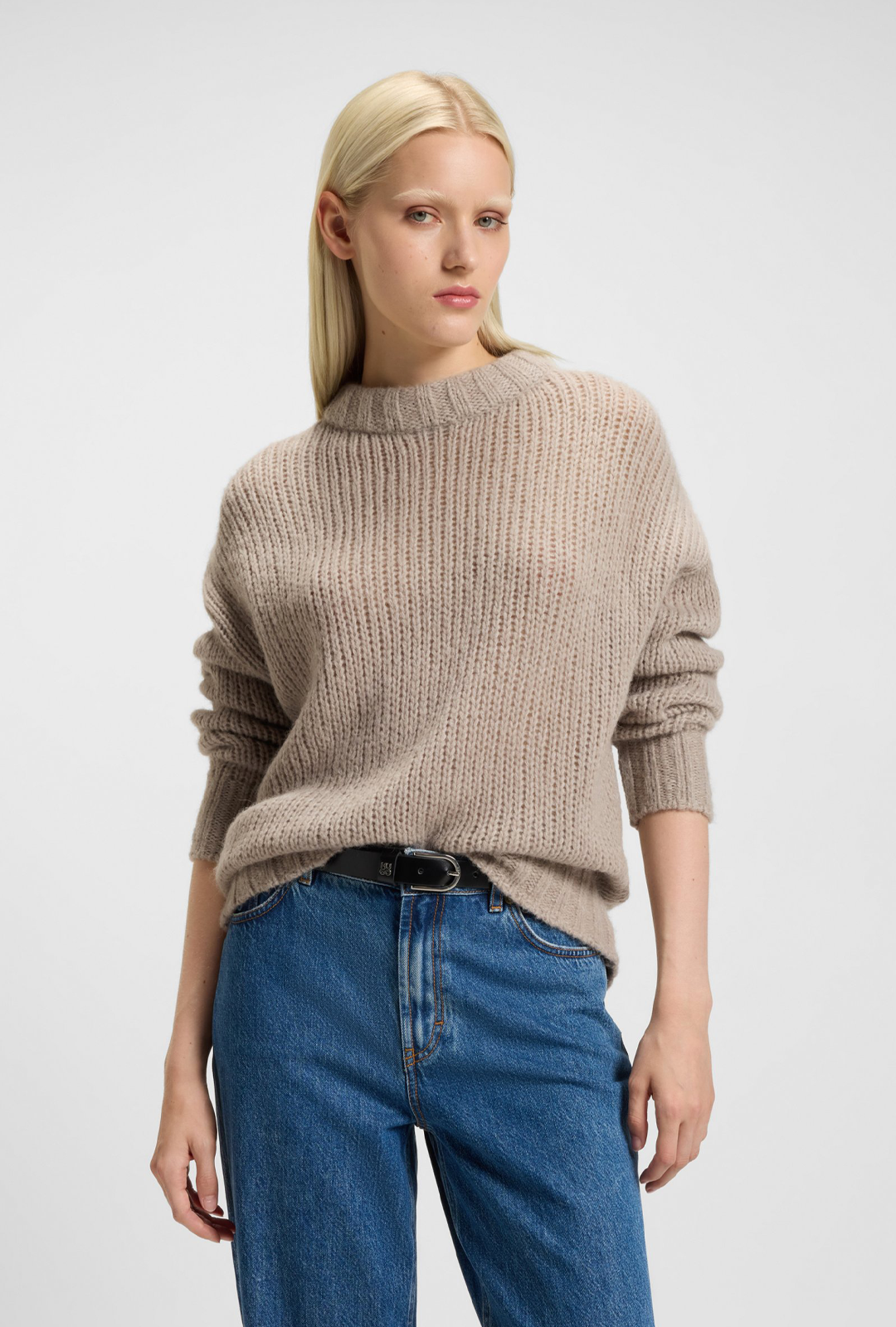 HUGO Pullover aus einem Woll-Mix mit Alpaka-Anteil. Der Oversize-Style ist mit einem Logo am Saum versehen.